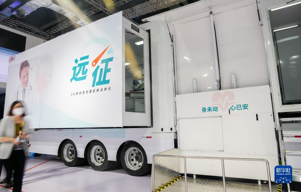 11月6日在第五屆進(jìn)博會(huì )醫療器械及醫藥保健展區西門(mén)子展臺拍攝的“遠征”5G移動(dòng)急危重癥救治單元。