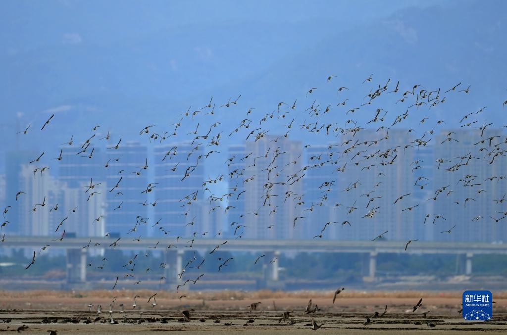 這是在閩江河口濕地拍攝的鳥(niǎo)群(11月5日攝)。