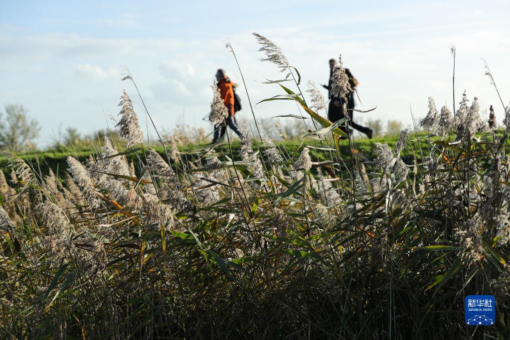 在荷蘭多德雷赫特,人們在比斯博斯國家公園徒步(11月2日攝)。