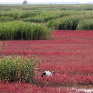 遼河三角洲濕地包括蘆葦沼澤、淺海海域、河流庫塘、水稻田等濕地類(lèi)型。濕地內分布各類(lèi)野生動(dòng)物。特殊環(huán)境孕育出的堿蓬草鋪滿(mǎn)灘涂,一到秋天這里就成了“紅色海岸線(xiàn)”。