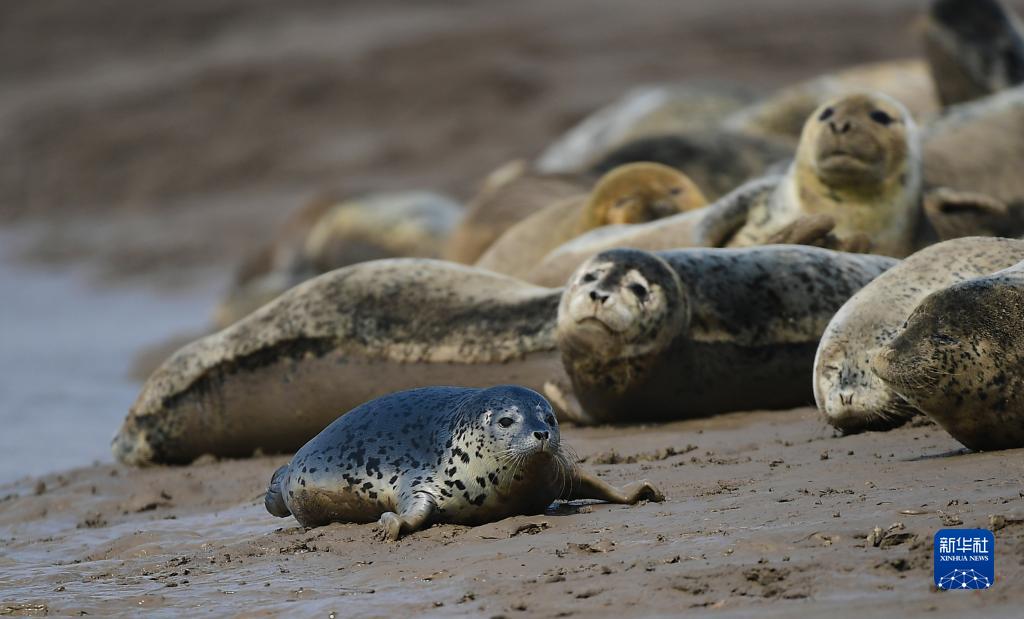 斑海豹在遼寧盤(pán)錦三道溝海域的灘涂上小憩(2021年4月20日攝)。