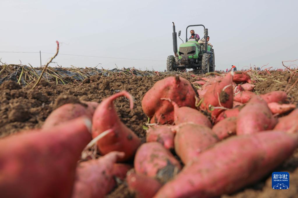 11月7日,河南省平頂山市寶豐縣周莊鎮西黃村農民在收獲紅薯。