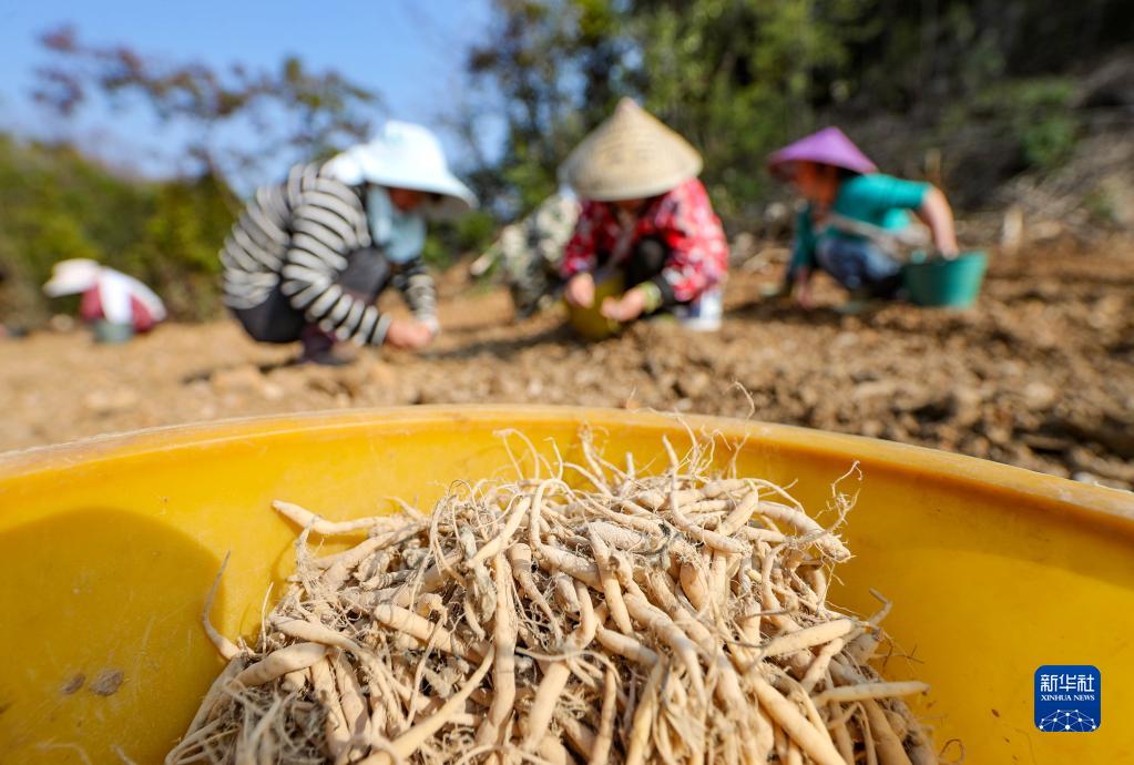 11月7日,貴州省黔東南苗族侗族自治州岑鞏縣天馬鎮天馬村,村民在種植太子參。