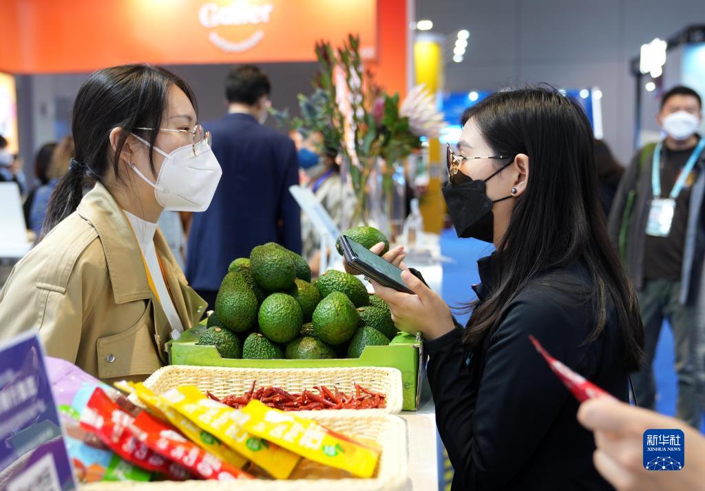 11月7日在第五屆進(jìn)博會(huì )食品及農產(chǎn)品展區拍攝的來(lái)自肯尼亞的牛油果。