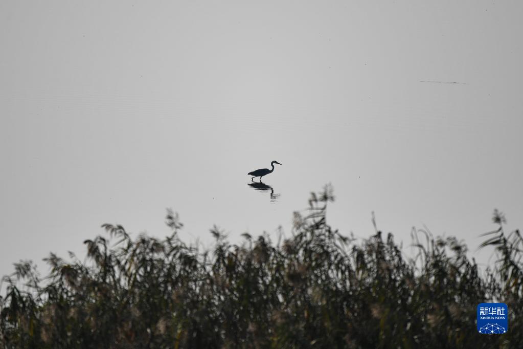 一只白鷺在沉湖濕地內覓食(11月6日攝)。