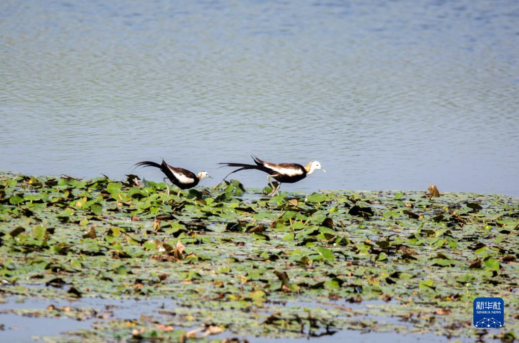 棲息在沉湖濕地的水雉(8月4日攝)。