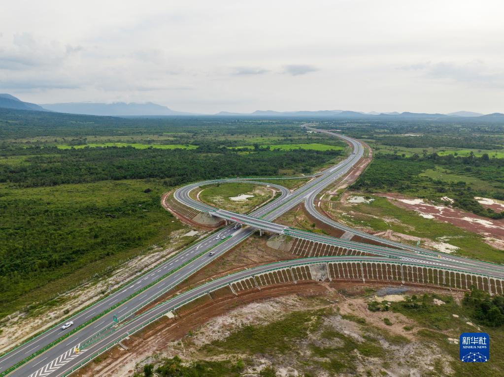 這是10月28日在柬埔寨西哈努克省拍攝的金港高速公路(無(wú)人機照片)。