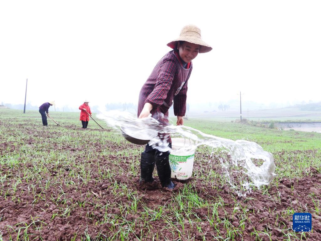 11月8日,在四川省達州市渠縣貴福鎮黃泥社區,人們澆灌冬小麥。