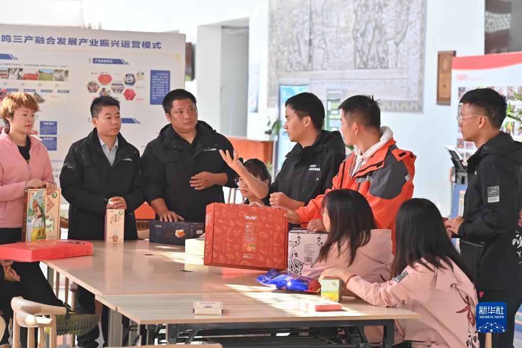 在廣西融水苗族自治縣農產(chǎn)品電商中心,負責人吳紹林(右五)和同事探討業(yè)務(wù)(11月8日攝)。近年來(lái),在粵桂協(xié)作的幫扶下,當地電商得到進(jìn)一步發(fā)展。