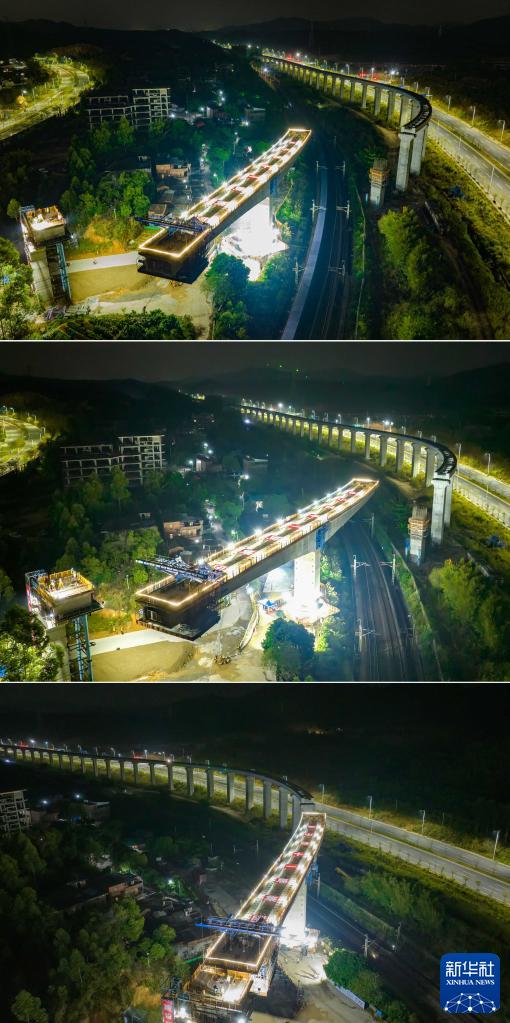 拼版照片:清遠磁浮旅游專(zhuān)線(xiàn)長(cháng)隆特大橋跨京廣鐵路連續梁轉體過(guò)程(11月8日攝,無(wú)人機照片)。