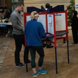 11月8日,選民在美國弗吉尼亞州阿靈頓的一處投票點(diǎn)參加中期選舉投票。
