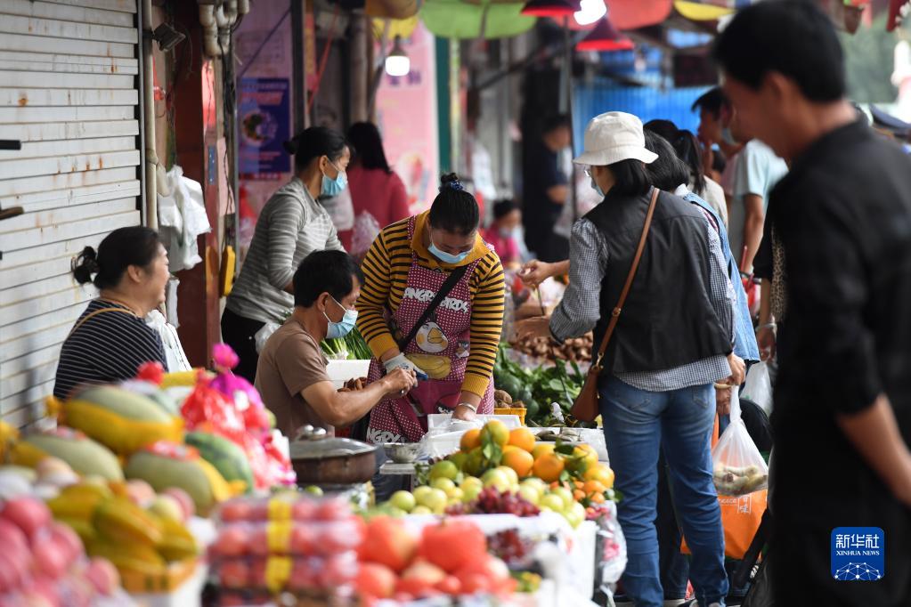 11月9日,在廣西南寧市濱湖路一家農貿市場(chǎng),市民在選購水果。