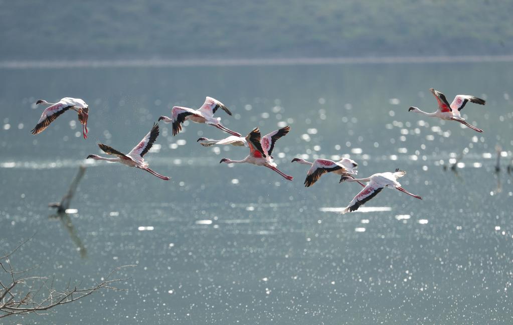 這是11月6日在肯尼亞博戈里亞湖拍攝的火烈鳥(niǎo)。