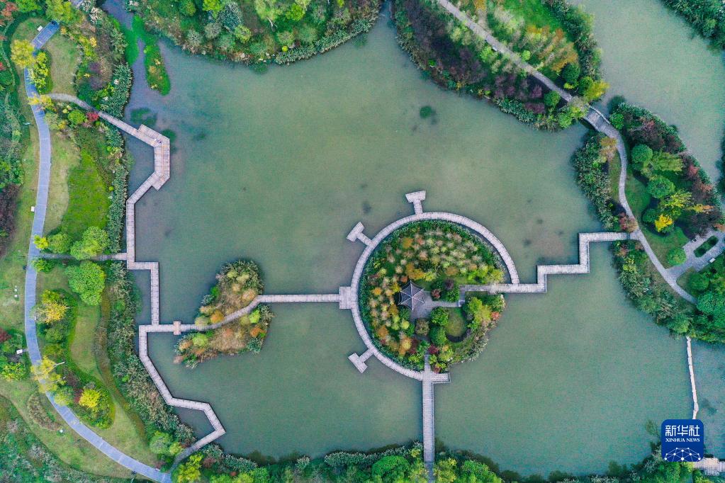 11月7日拍攝的重慶市梁平區雙桂湖國家濕地公園一帶景象(無(wú)人機照片)。