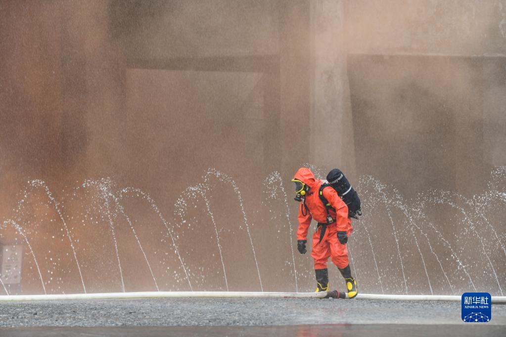 11月9日,在四川省宜賓市敘州區,演練人員進(jìn)行消防滅火工作。