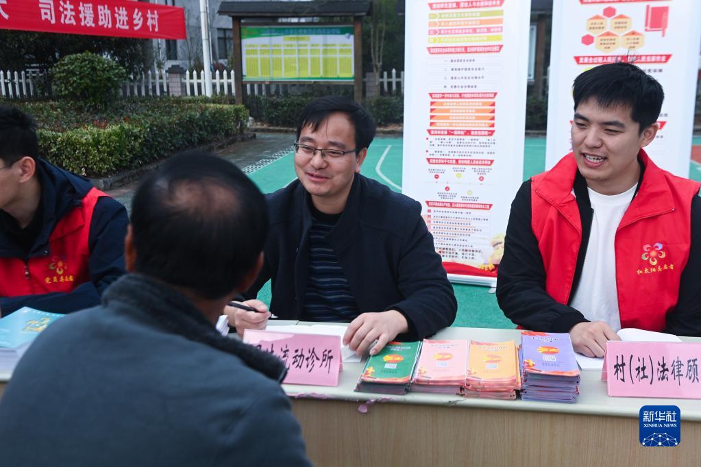 11月9日,在杭州市臨安區太陽(yáng)鎮上太陽(yáng)村,臨安區太陽(yáng)司法所所長(cháng)方凱(右二)現場(chǎng)解答法律問(wèn)題。
