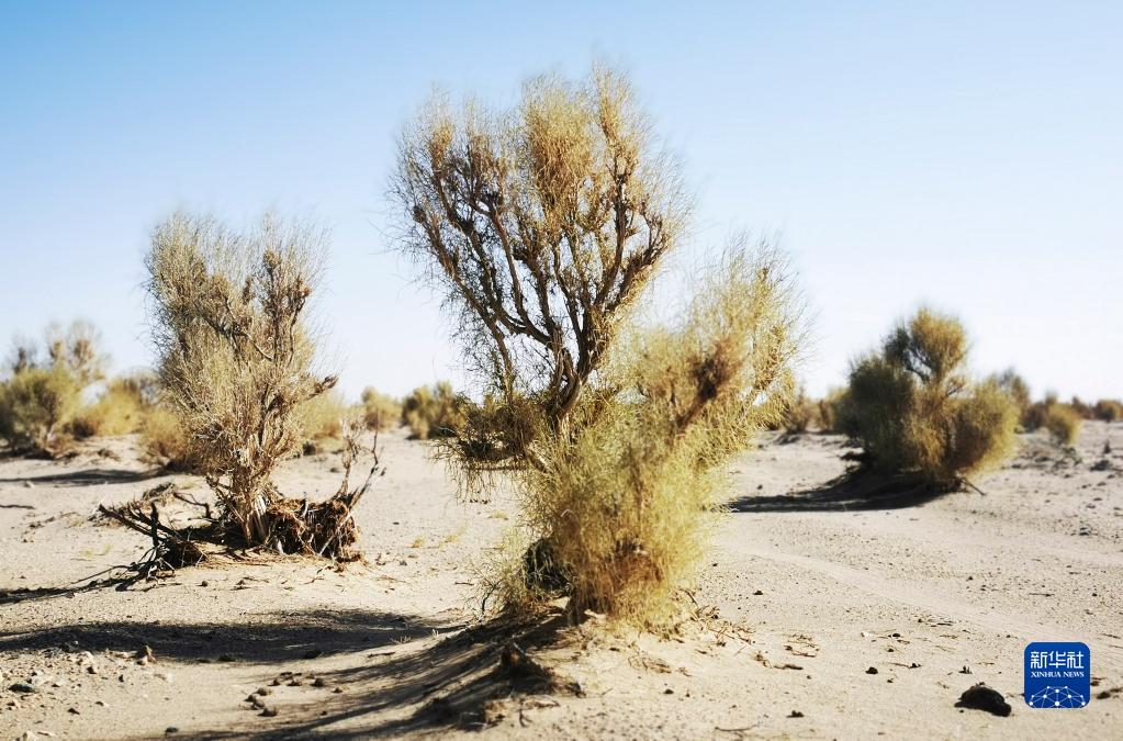 這是內蒙古巴彥淖爾市烏拉特后旗巴音查干嘎查牧民種植的梭梭(11月4日攝)。