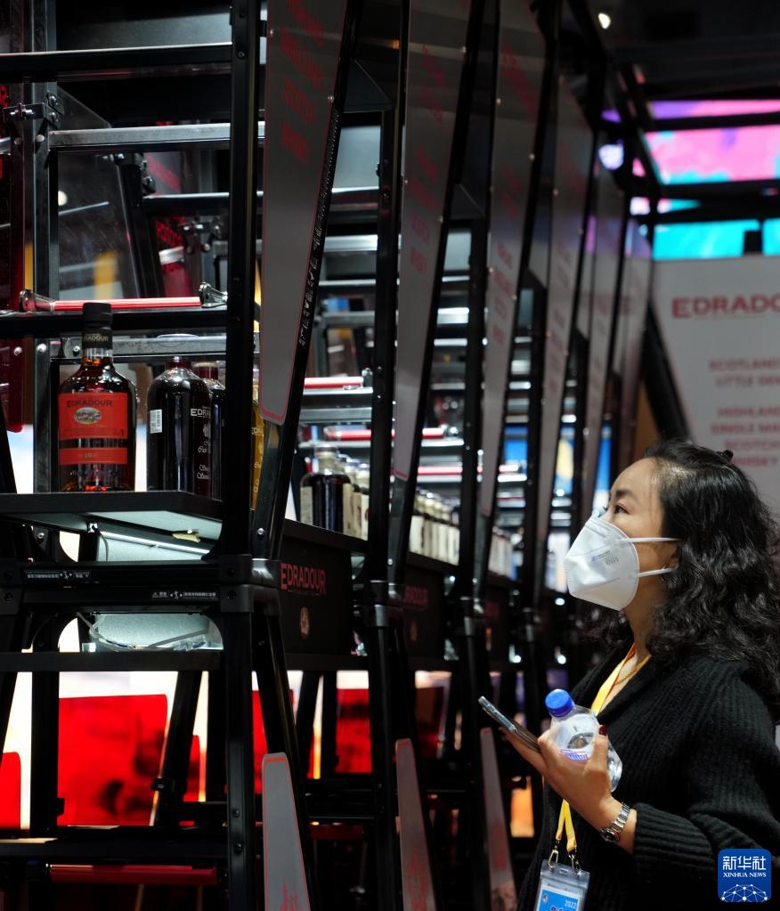 11月7日,參觀(guān)者在第五屆進(jìn)博會(huì )上參觀(guān)來(lái)自蘇格蘭的威士忌。