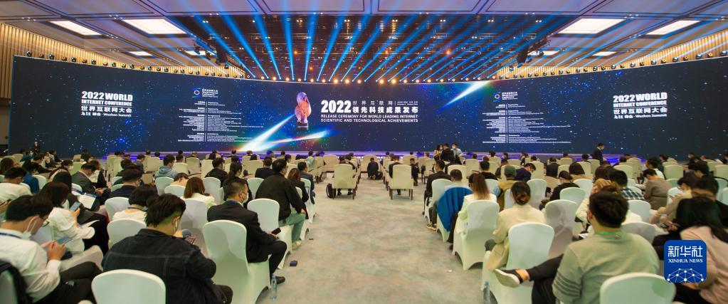 這是11月9日拍攝的世界互聯(lián)網(wǎng)領(lǐng)先科技成果發(fā)布現場(chǎng)。當日,15項世界互聯(lián)網(wǎng)領(lǐng)先科技成果在浙江烏鎮舉行的2022年世界互聯(lián)網(wǎng)大會(huì )烏鎮峰會(huì )上發(fā)布,涵蓋了與互聯(lián)網(wǎng)相關(guān)的基礎理論、技術(shù)、產(chǎn)品和商業(yè)模式等類(lèi)別。新華社記者 江漢 攝