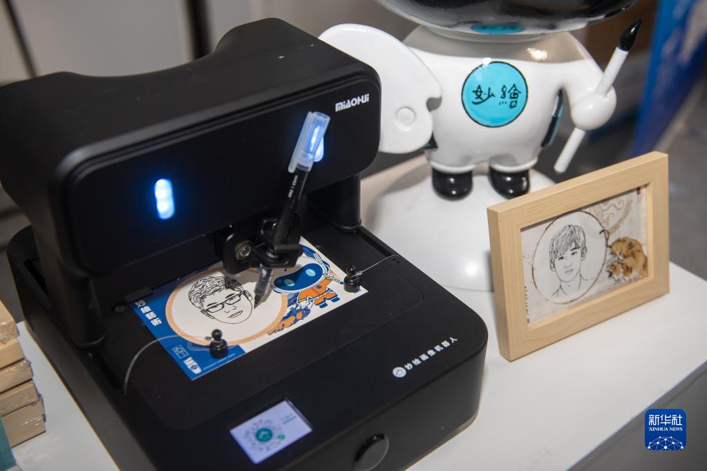 11月10日,妙繪畫(huà)像機器人在演示自動(dòng)作畫(huà)。