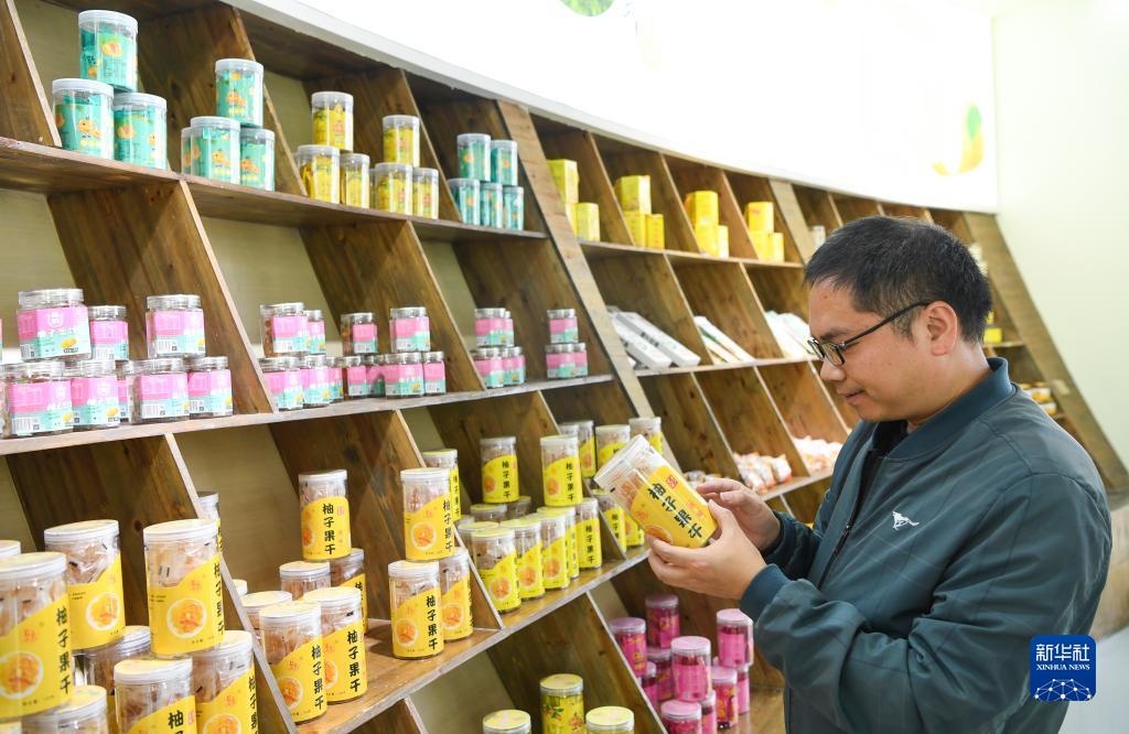 11月9日,在重慶市梁平區合興鎮龍灘村一家柚子營(yíng)銷(xiāo)中心,消費者在選購柚子果干產(chǎn)品。