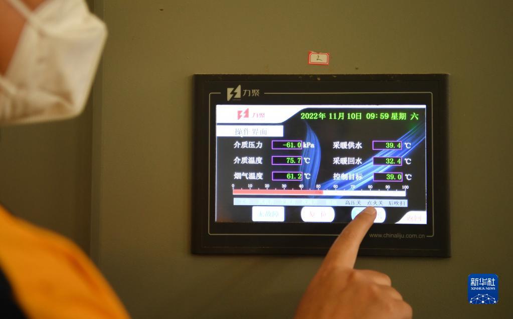 11月10日,石家莊市旭城花園供熱站工作人員在查看供暖設備運行情況。