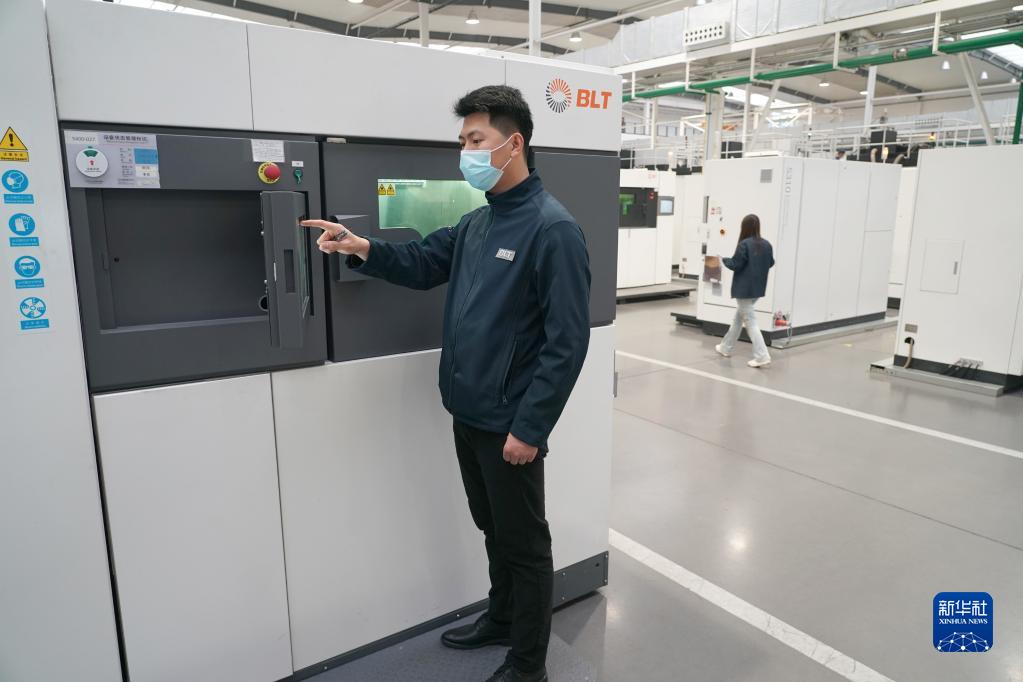 11月8日,工人在位于西安高新區的鉑力特金屬增材制造智能工廠(chǎng)項目車(chē)間內操作3D打印設備。