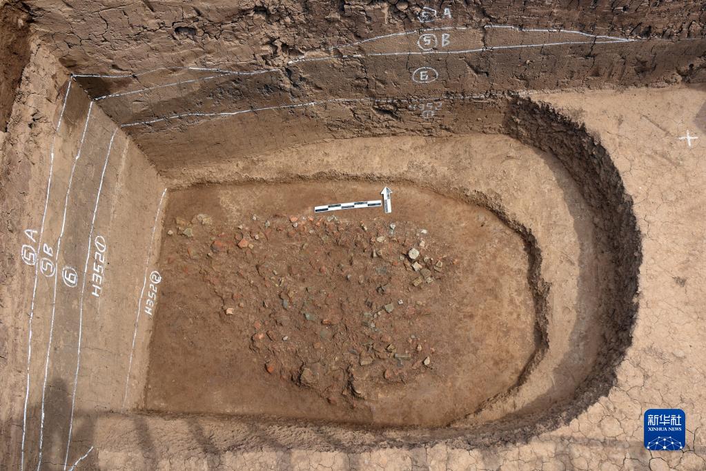 辛店遺址陶范廢棄堆積坑H352出土情況(資料照片)。