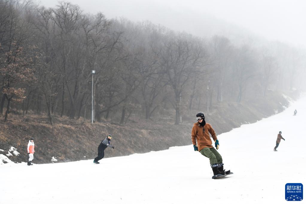 11月11日,滑雪愛(ài)好者在廟香山滑雪場(chǎng)滑雪。