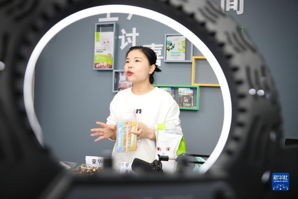 11月11日,在邢臺市南和區賈宋鎮一家寵物電商企業(yè),主播通過(guò)直播的方式銷(xiāo)售寵物食品。