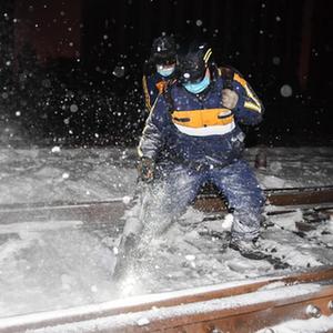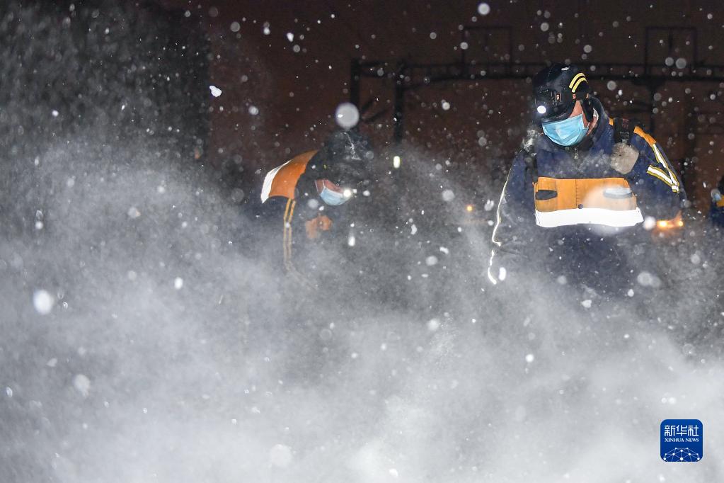 新華全媒+丨冬夜除冰雪 列車(chē)保安全