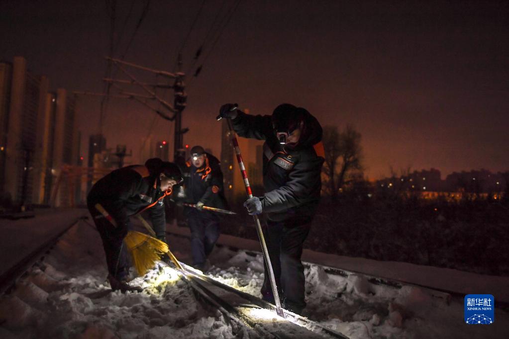 新華全媒+丨冬夜除冰雪 列車(chē)保安全
