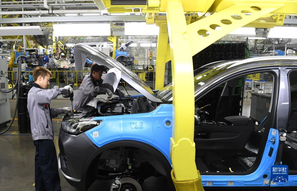 11月12日,工人在安慶一家汽車(chē)企業(yè)生產(chǎn)線(xiàn)上工作。