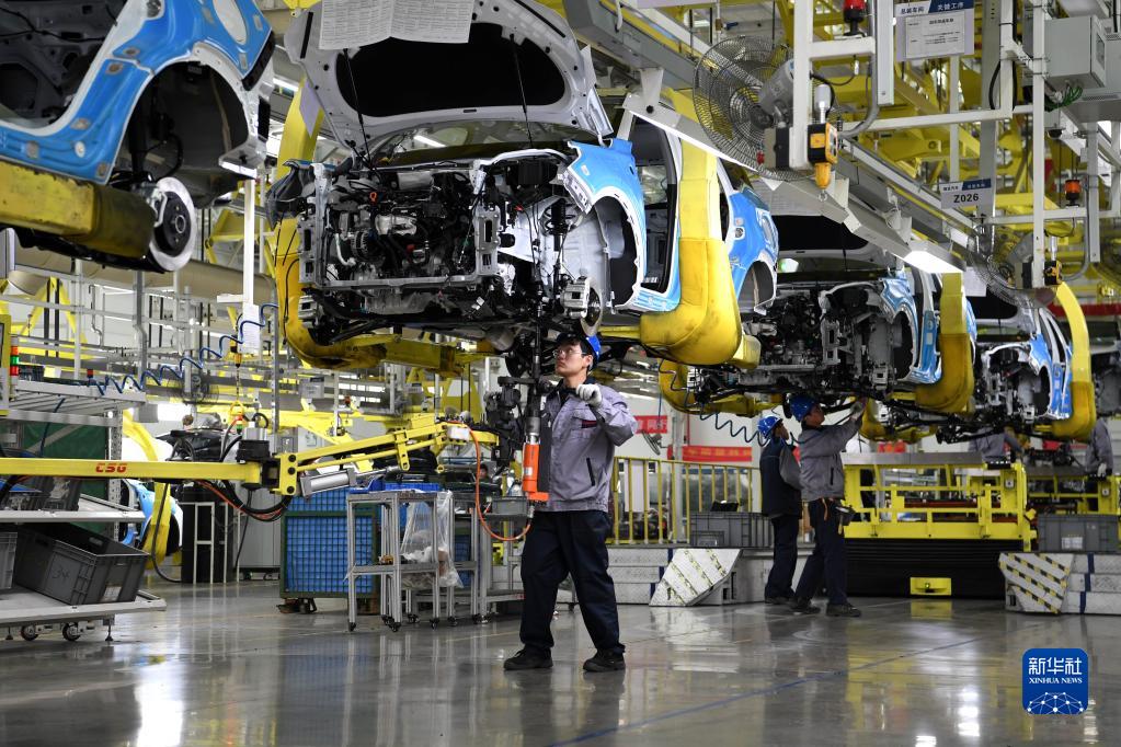 11月12日,工人在安慶一家汽車(chē)企業(yè)生產(chǎn)線(xiàn)上工作。