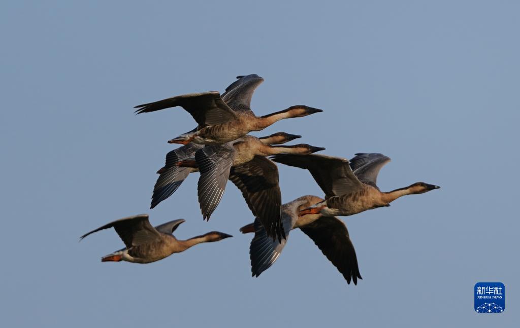 11月10日,鴻雁在南昌高新區五星白鶴保護小區飛翔。
