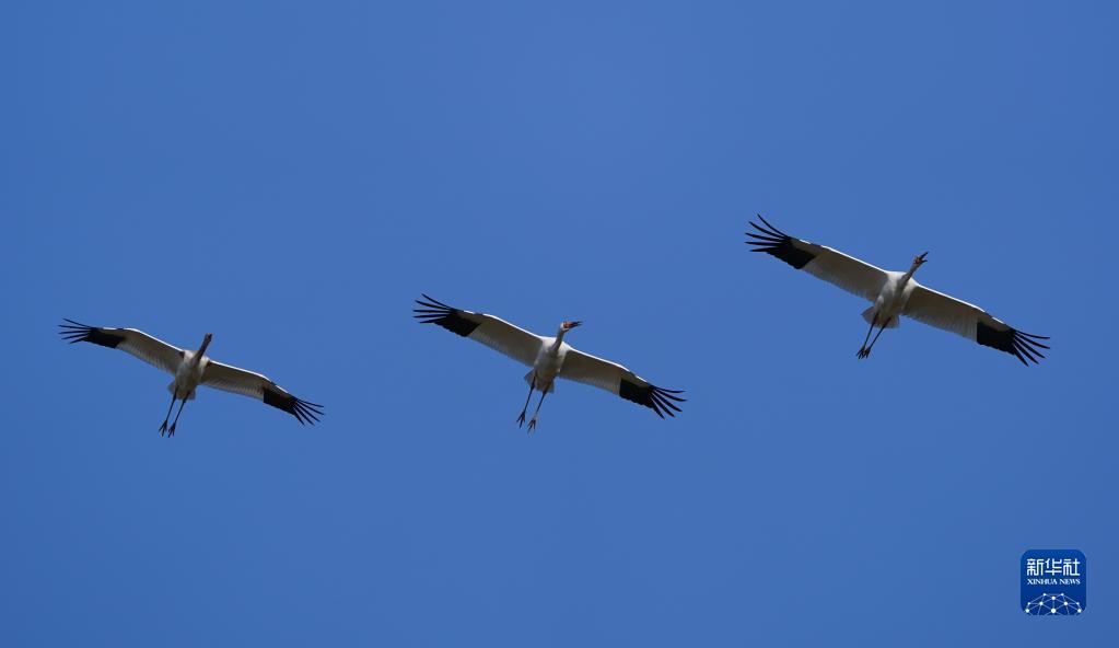 隨著(zhù)冬季來(lái)臨,首批冬候鳥(niǎo)陸續抵達我國最大淡水湖江西鄱陽(yáng)湖。在南昌高新區五星白鶴保護小區和鄱陽(yáng)湖南磯濕地國家級自然保護區,白鶴、灰鶴、鴻雁、東方白鸛等多種候鳥(niǎo)棲息、覓食。
