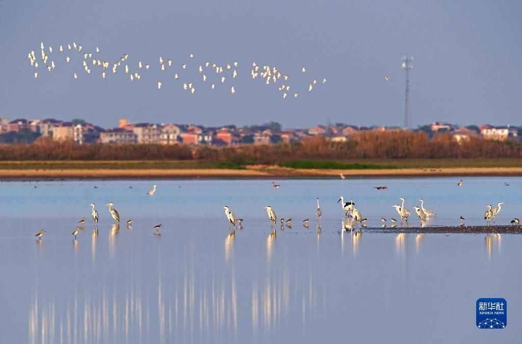 11月11日,眾多候鳥(niǎo)在江西鄱陽(yáng)湖南磯濕地國家級自然保護區的濕地棲息。