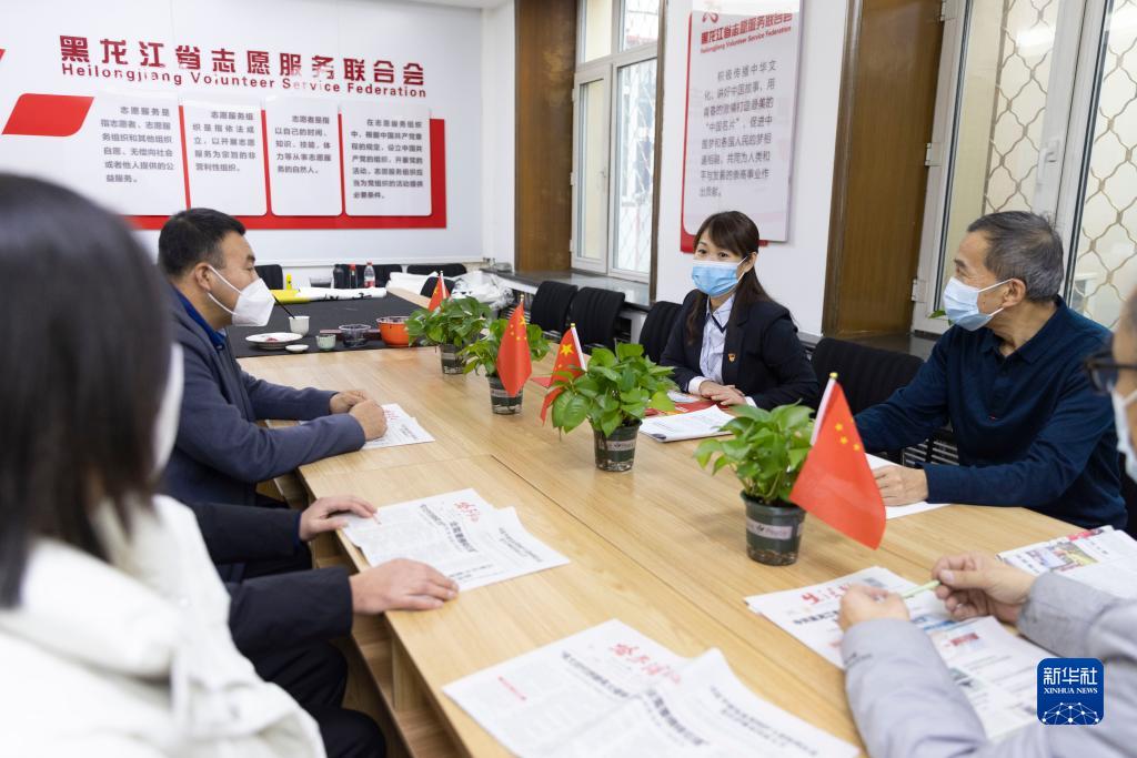 11月11日,在哈爾濱市志愿者協(xié)會(huì )辦公區,郝麗影進(jìn)行宣講。