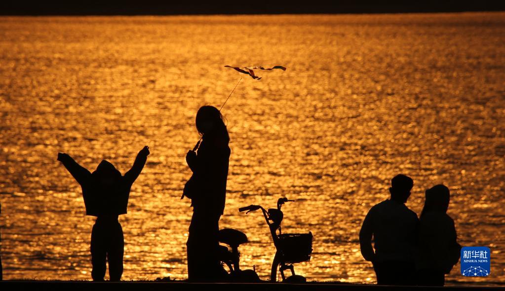 哈爾濱的市民在松花江濕地游玩(4月15日攝)。