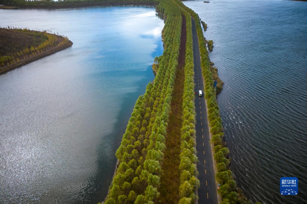 哈爾濱呼蘭河口濕地公園景色(10月4日攝,無(wú)人機照片)。