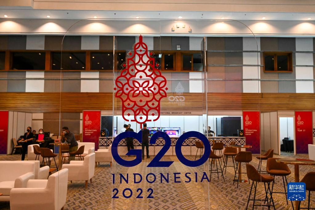 這是11月12日在印度尼西亞巴厘島拍攝的峰會(huì )媒體中心內景。