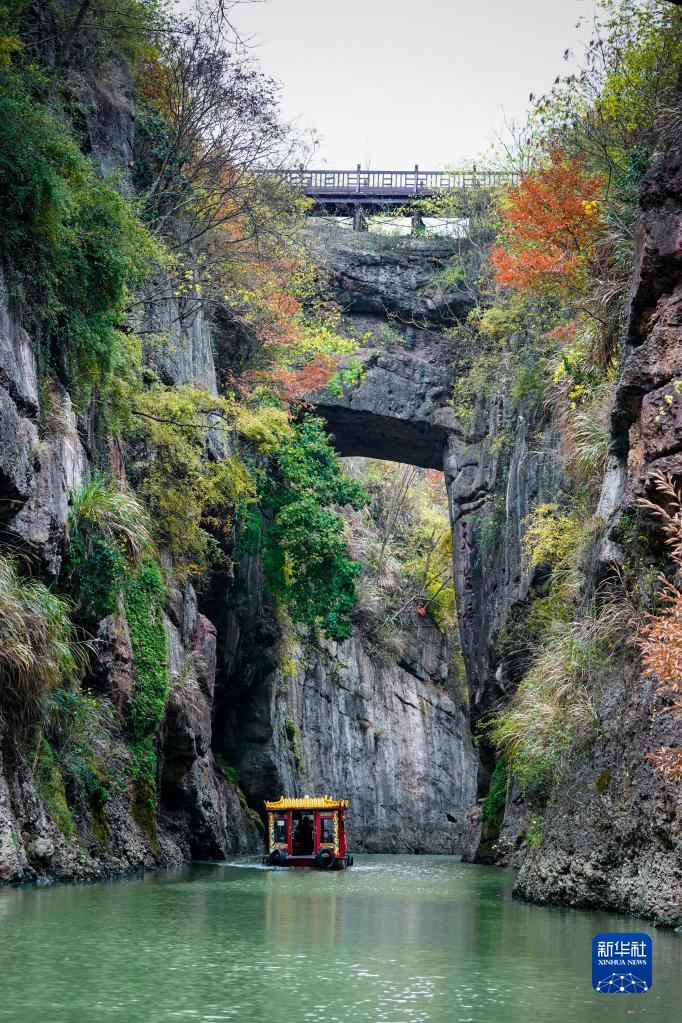 初冬時(shí)節,位于南京市溧水區的胭脂河兩岸奇石怪巖,色彩斑斕。新華社記者 楊磊 攝