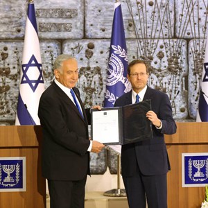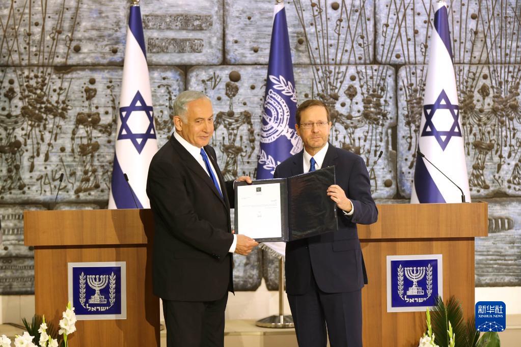 以色列總統赫爾佐格13日正式授權前總理、利庫德集團領(lǐng)導人內塔尼亞胡組建新政府。新華社記者 王卓倫 攝