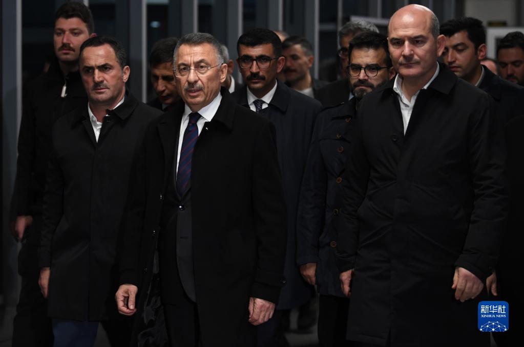 11月13日,在土耳其伊斯坦布爾,土耳其副總統奧克塔伊(中)和其他政府官員從塔克西姆廣場(chǎng)附近的一家醫院走出。