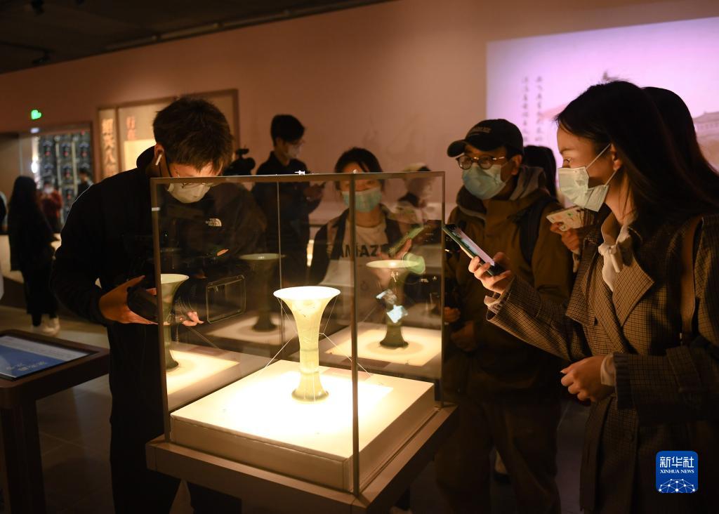 11月14日,媒體記者在觀(guān)看南宋德壽宮遺址博物館內展陳的南宋器物。