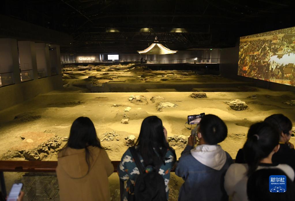 11月14日,媒體記者參觀(guān)南宋德壽宮遺址博物館展示的宮苑建筑遺跡。