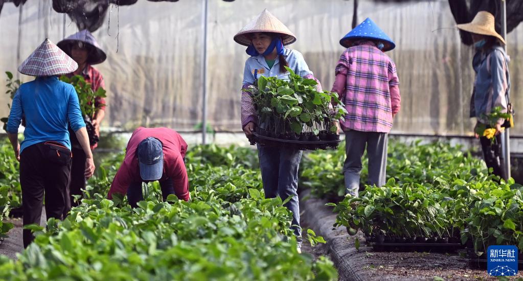 在“黃金百香果”種苗培育基地,當地群眾在整理“黃金百香果”種苗(11月10日攝)。