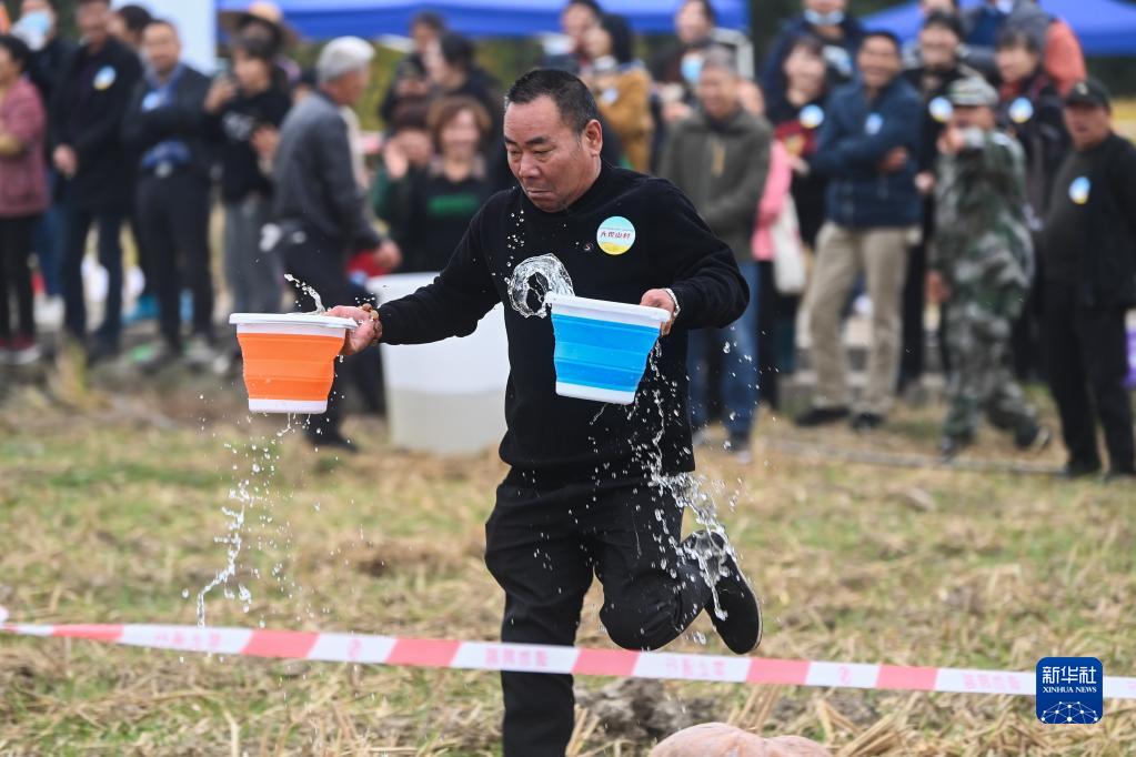 11月15日,參賽村民參加“運水抗旱”趣味比賽。