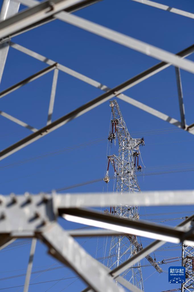 工人在寧夏典農220千伏輸變電工程跨越包蘭鐵路和俊福110千伏帶電線(xiàn)路施工現場(chǎng)施工(11月14日攝)。
