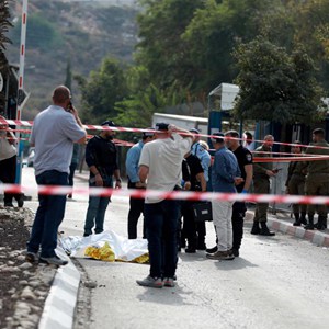 11月15日,人們聚集在約旦河西岸城鎮塞勒菲特一定居點(diǎn)附近的襲擊現場(chǎng)。